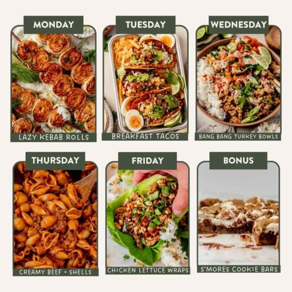 Quick Links ​Monday: Lazy Kebab Rolls​ ​Tuesday: Breakfast for Dinner (10-Minute Smash Tacos!)​ ​Wednesday: Bang Bang Turkey Rice Bowls ​Thursday:…
